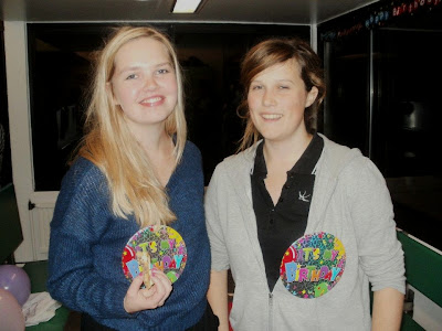 dagen etter var alle samlet på kjøkkenet fordi vi skulle synge bursdagssang og annet fint. fikk både pakke og kake. cookie-kake. åh, den var sykt god.